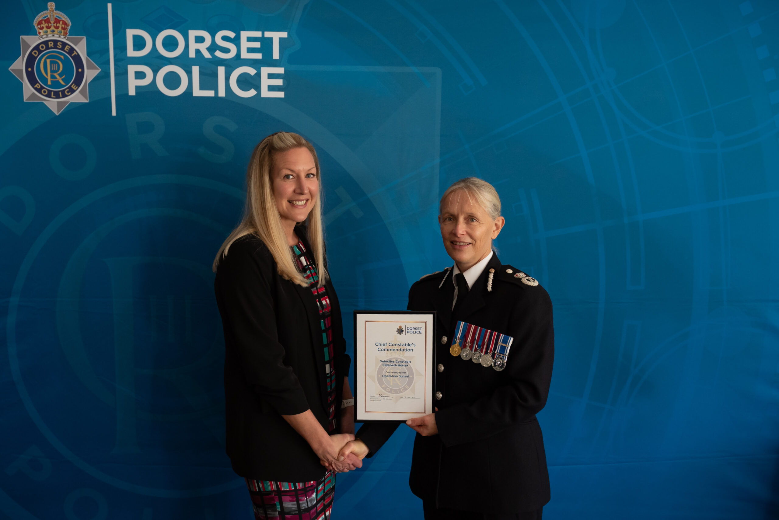 Long Service and Good Conduct medals were awarded to twenty-two officers who have each completed at least twenty years of service. Among them was Detective Constable Elizabeth Horrex, who has served in Dorset Police for twenty-four years and now works within the Major Crime Investigation Team.