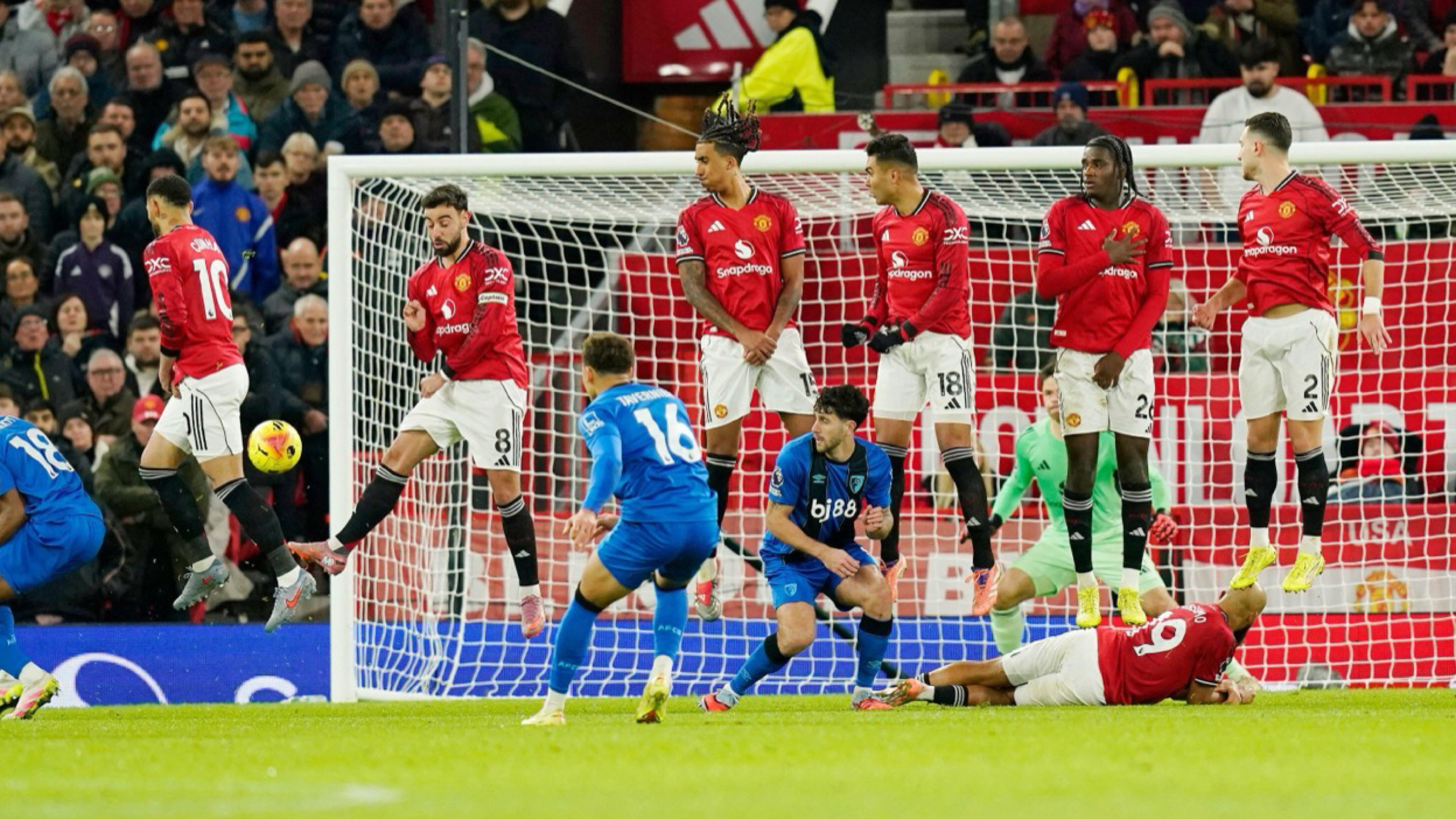 United regained the lead in first half added time when Casemiro headed home from a corner, sending the hosts into the break with a two one advantage despite Bournemouth showing composure and bravery in possession.